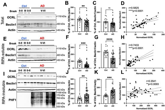 2.2.2. OCRL Is Depleted from the RIPA-Soluble Fraction and Correlates with Beclin1 Levels in Control and AD Brains