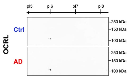 2.2.3. No Aberrant Post-Translational Modifications of OCRL Were Detected in AD Samples by 2D WB