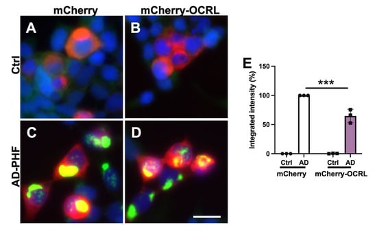2.3. OCRL Overexpression Attenuates FRET-Positive Tau Inclusions in HEK Tau RD P301L FRET Biosensor Cells