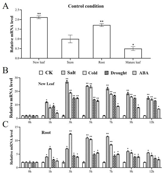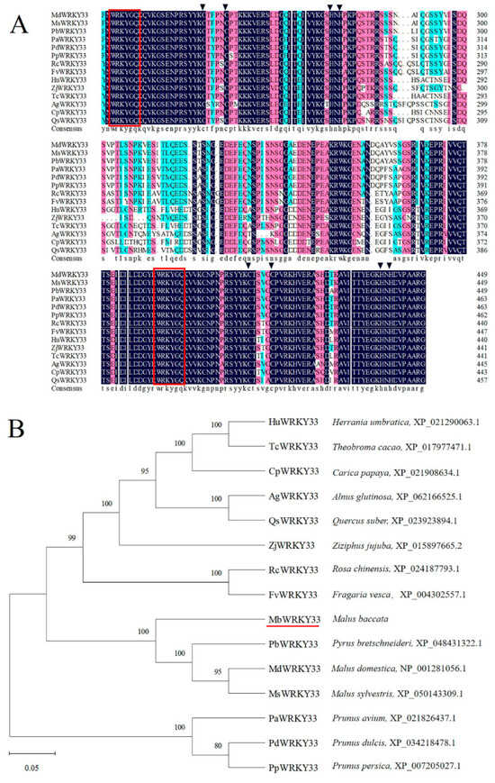 2.3. Analysis of the Expression Level of MbWRKY33 in Malus baccata
