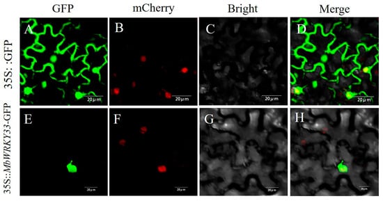 2.2. MbWRKY33 Protein Was Located in the Nucleus