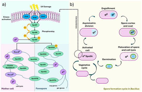 - Suárez, V.P.; Martínez, L.E.; Leyva-Sánchez, H.C.; Valenzuela-García, L.I.; Lara-Martínez, R.; Jiménez-García, L.F.; Ramírez-Ramírez, N.; Obregon-Herrera, A.; Cuéllar-Cruz, M.; Robleto, E.A.; et al. Transcriptional coupling and repair of 8-OxoG activate a RecA-dependent checkpoint that controls the onset of sporulation in Bacillus subtilis. Sci. Rep. 2021, 11, 2513. [Google Scholar] [CrossRef] [PubMed]