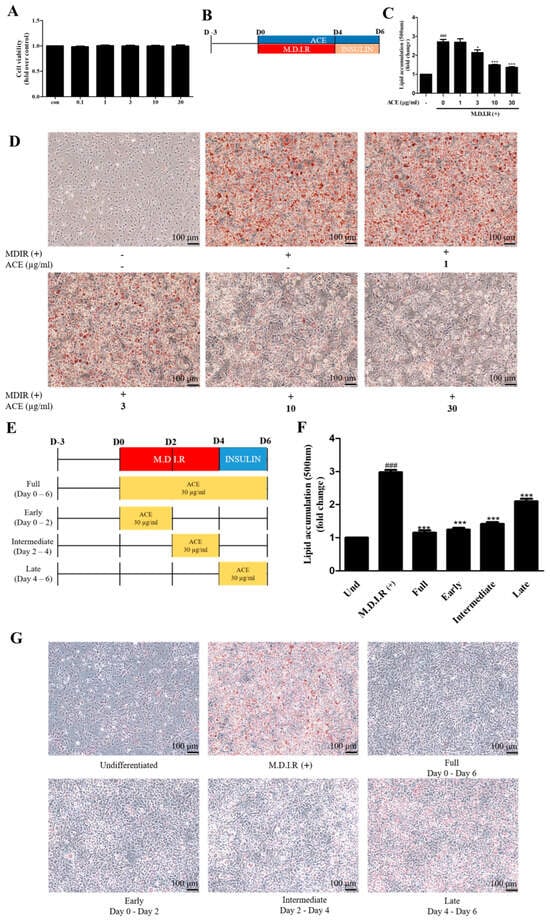 2.1. Antrodia cinnamomea Alcohol Extract Inhibits Adipogenesis and Lipid Accumulation in 3T3-L1 Cells