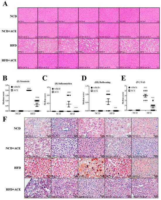 2.4. Antrodia cinnamomea Alcohol Extract Attenuates Hepatic Steatosis and Non-Alcoholic Fatty Liver Disease-like Features Induced by High-Fat Diet