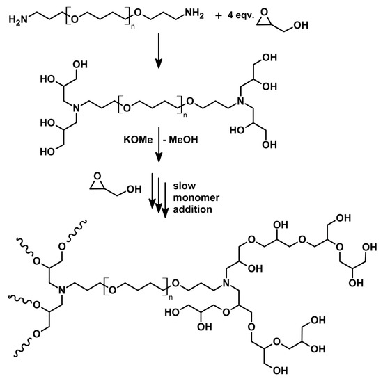 - Pouyan, P.; Cherri, M.; Haag, R. Polyglycerols as Multi-Functional Platforms: Synthesis and Biomedical Applications. Polymers 2022, 14, 2684. [Google Scholar] [CrossRef]