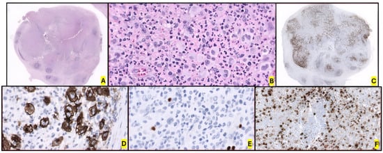 - Pielasinski, U.; Santonja, C.; Rodríguez-Pinilla, S.M.; Requena, L. Extracavitary Primary Effusion Lymphoma Presenting as a Cutaneous Tumor: A Case Report and Literature Review. J. Cutan. Pathol. 2014, 41, 745–753. [Google Scholar] [CrossRef]