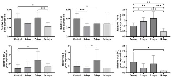 - Wagner, J.G.; Van Dyken, S.J.; Wierenga, J.R.; Hotchkiss, J.A.; Harkema, J.R. Ozone exposure enhances endotoxin-induced mucous cell metaplasia in rat pulmonary airways. Toxicol. Sci. 2003, 74, 437–446. [Google Scholar] [CrossRef]