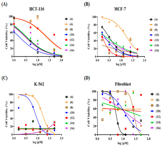 | HCT-116 Colon Cancer | MCF-7 Breast Cancer | K-562 Leukemia | Dermal Fibroblast Normal | ||