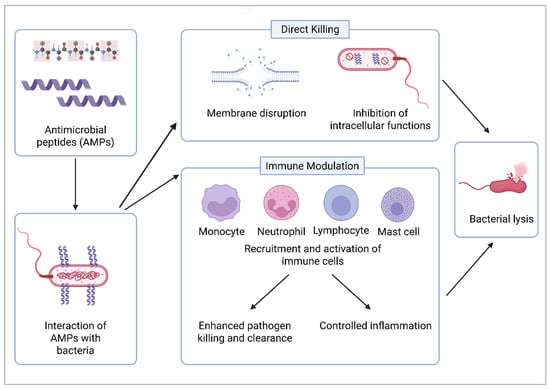 - Duarte-Mata, D.I.; Salinas-Carmona, M.C. Antimicrobial peptides immune modulation role in intracellular bacterial infection. Front. Immunol. 2023, 14, 1119574. [Google Scholar] [CrossRef]