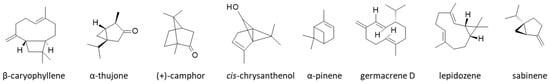 Examples of volatile molecules found in C. boreale essential oil (EO).