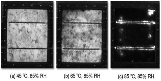 - Park, N.; Han, C.; Kim, D. Effect of Moisture Condensation on Long-Term Reliability of Crystalline Silicon Photovoltaic Modules. Microelectron. Reliab. 2013, 53, 1922–1926. [Google Scholar] [CrossRef]