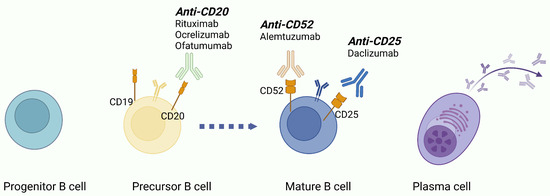 - Kanatas, P.; Stouras, I.; Stefanis, L.; Stathopoulos, P. B-Cell-Directed Therapies: A New Era in Multiple Sclerosis Treatment. Can. J. Neurol. Sci. 2023, 50, 355–364. [Google Scholar] [CrossRef]