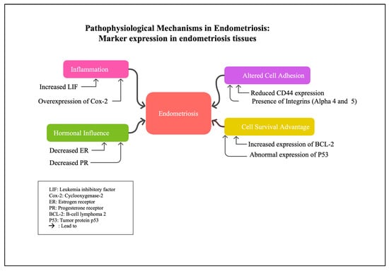 The results underscore the complex and heterogeneous molecular environment of ectopic endometriotic lesions, highlighting both inflammatory and adhesion-related pathways that differentiate them from the eutopic endometrium. While numerous markers, such as LIF, COX-2, and CRH, are elevated in ectopic tissues, their roles appear to be context-dependent, suggesting dynamic alterations in the disease microenvironment. Despite these findings, there remains a lack of studies directly comparing these markers across different patient populations or lesion types. This limitation affects our ability to draw definitive conclusions about their universal significance. Therefore, integrating these molecular insights with clinical data and functional studies is essential for translating these biomarkers into targeted therapies and for understanding their variability across diverse patient cohorts.