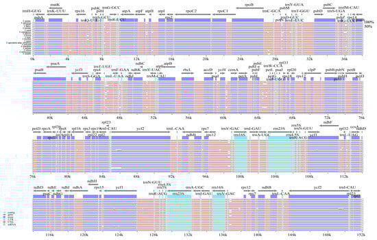 - Shi, L.; Chen, H.; Jiang, M.; Wang, L.; Wu, X.; Huang, L.; Liu, C. CPGAVAS2, an integrated plastome sequence annotator and analyzer. Nucleic Acids Res. 2019, 47, W65–W73. [Google Scholar] [CrossRef]