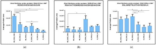 | SLDTKSVSEGHLK | GFAP | P14136 | 1400.74 | - | 393–404 | x | x | x | x |