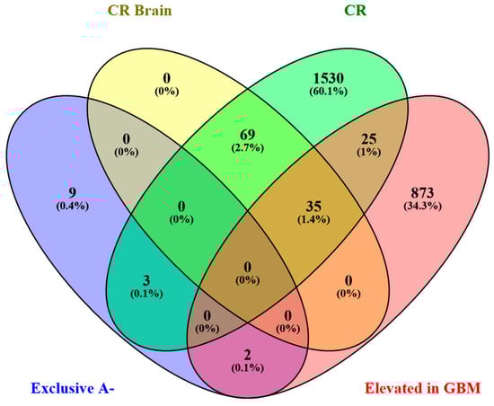 2.2. Analysis of the GBM CUSA A+ Zone: The ND and R GBM Exclusive and Shared Peptides