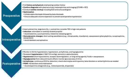- Kamath, A.S.; Singh, K. Perioperative Management of Pheochromocytoma. In StatPearls [Internet]; StatPearls Publishing: Treasure Island, FL, USA, 2025. Available online: https://www.ncbi.nlm.nih.gov/books/NBK589634/ (accessed on 6 July 2023).