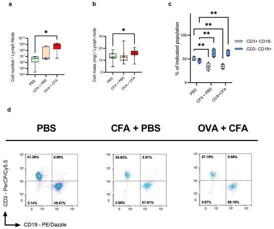 2.1. OVA + CFA Treatment Increases the Lymph Node Mass and Cell Number