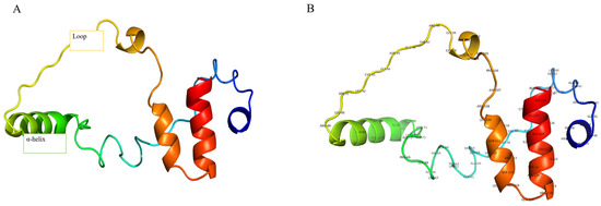 GnRH protein 3D structure (A), protein 3D structure with residues (B).