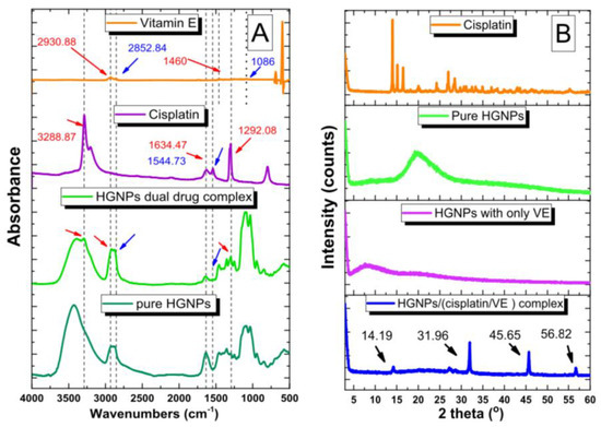Many studies applied the FTIR method in order to confirm the formation of VD/CD complexes by comparing their vibrational spectrum with the spectra of pure substrates and their physical mixtures prepared in proper molar ratios. Usually, the spectra of physical mixtures are the superposition of the spectra of pure substrates, while the FTIR spectra of complexes differ slightly in the number of vibrations in the spectrum and their position (differences in wavenumber values). Although the registration of FTIR spectra does not require complicated sample preparation and is not difficult to perform, the obtained results are usually not very informative, and the formation of complexes should often be confirmed by additional methods, e.g., NMR, PXRD, or DSC [20,93,94,98].