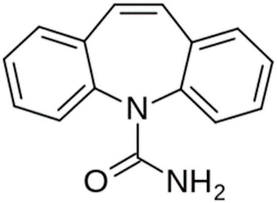 Molecular structure of carbamazepine.
