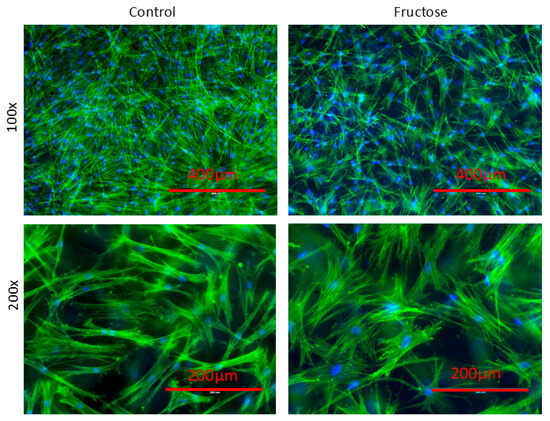 2.1. Human Dermal Fibroblasts Grown in the Presence of Fructose Showed Cellular Abnormalities
