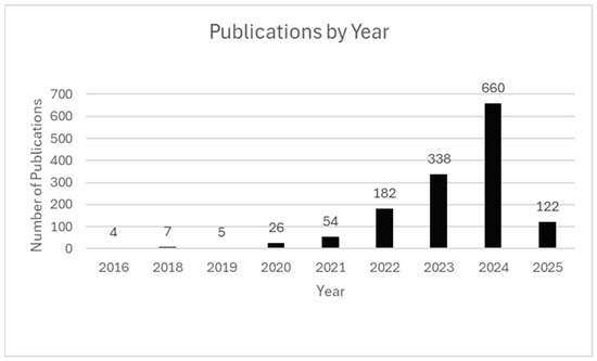 These trends indicate a shift from specialized research methods to accessible technology for studying health and disease across biological systems and microenvironments. Figure 2 visualizes these upward trends in publication volume for studies meeting inclusion criteria, including partial data represented for 2025 through 7 February.