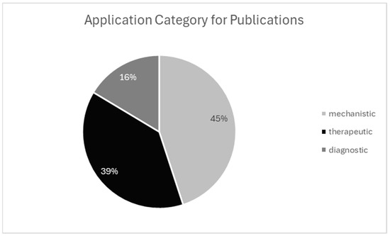 Application category for publication. Categorization of studies by primary research aim. Mechanistic studies were most common, followed by therapeutic and diagnostic.