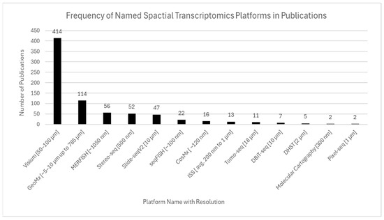 In total, 1398 included studies spanned a publication period from 2016 to early 2025, reflecting the growing adoption of ST since its formalization [1]. Most ST publications focused on human tissues, especially in oncology, with common targets including the brain, breast, lung, liver, and gastrointestinal tract. A smaller but notable subset investigated veterinary or comparative models, such as mice, macaques, cattle, and canines, often in the context of infectious diseases, zoonotic diseases, neurodegeneration, or translational cancer research. However, most animal research in this subset employed animal models for human health insights.