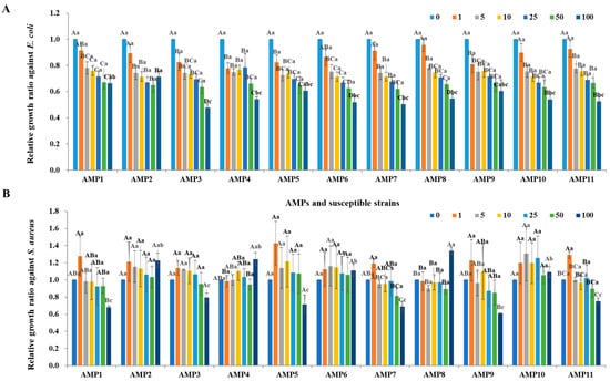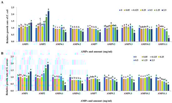 2.4. Antimicrobial Activity of Cloned AMPs from the P. silvilitoris Genome