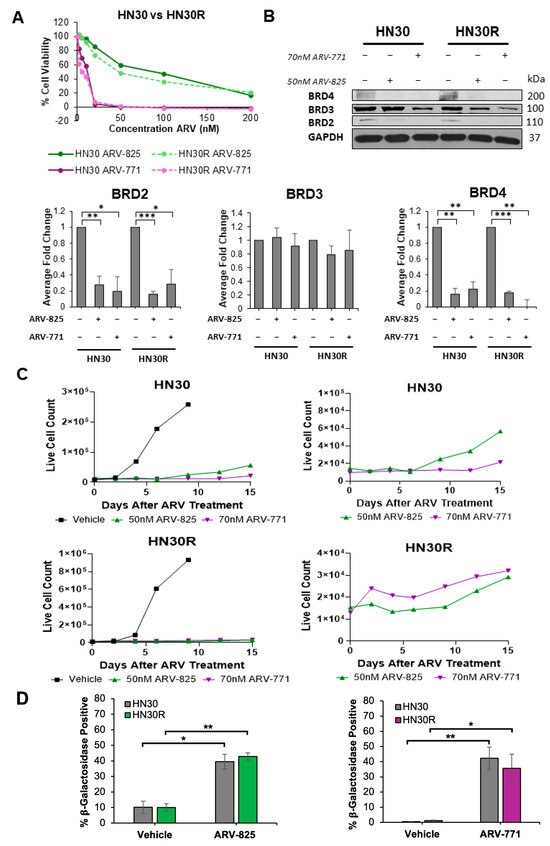 2.4. PROTAC BET Degraders Induce Senescence in the Parental and Resistant HNSCC Cells