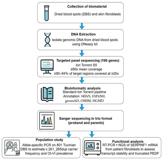 Study methodology: workflow of SERPINF1 gene variant sequencing and analysis.
