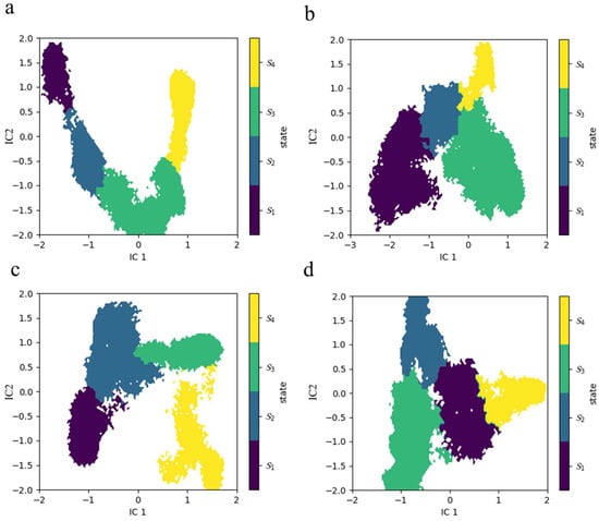 - Scherer, M.K.; Trendelkamp-Schroer, B.; Paul, F.; Pérez-Hernández, G.; Hoffmann, M.; Plattner, N.; Wehmeyer, C.; Prinz, J.-H.; Noé, F. PyEMMA 2: A software package for estimation, validation, and analysis of Markov models. J. Chem. Theory Comput. 2015, 11, 5525–5542. [Google Scholar] [CrossRef] [PubMed]