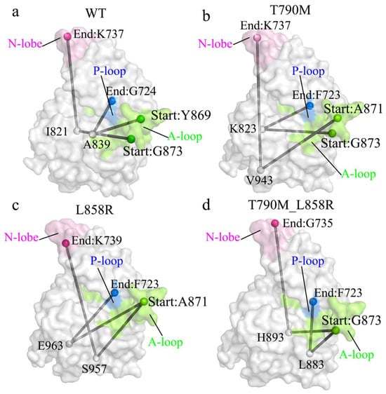 2.3. Interaction Network and Allosteric Pathway Analysis