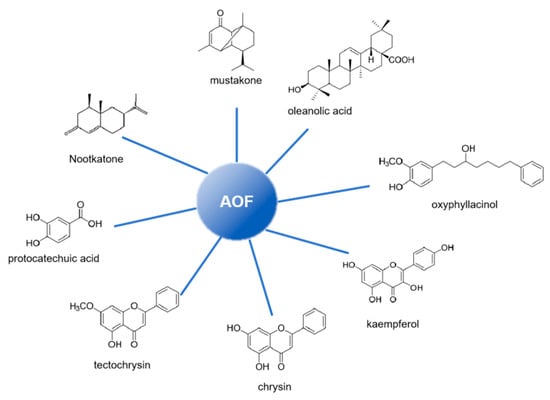 Recent studies have highlighted the potential of AOF as a valuable resource for natural drug development, driven by its abundant bioactive phytochemicals and broad pharmacological activities. Specifically, the volatile oil constituents exhibit inhibitory effects on pathogens like Staphylococcus aureus and Escherichia coli. The polysaccharide fractions contribute to enhance immune function, while the flavonoid components exert antioxidant effects by scavenging free radicals [5,17,18].