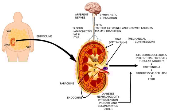- Declèves, A.E.; Sharma, K. Obesity and kidney disease: Differential effects of obesity on adipose tissue and kidney inflammation and fibrosis. Curr. Opin. Nephrol. Hypertens. 2015, 24, 28–36. [Google Scholar] [CrossRef]