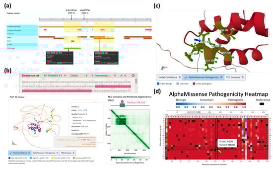 - Cheng, J.; Novati, G.; Pan, J.; Bycroft, C.; Žemgulytė, A.; Applebaum, T.; Pritzel, A.; Wong, L.H.; Zielinski, M.; Sargeant, T. Accurate proteome-wide missense variant effect prediction with AlphaMissense. Science 2023, 381, eadg7492. [Google Scholar] [CrossRef]