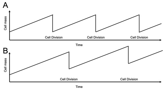 It is well established that the ratio between the amount of protein a eukaryotic cell produces is directly proportional to cell growth and that the rate of cell growth (i.e., total protein production) is coupled in most cells to the frequency of cell division [4]. The amount of protein produced per individual cell division cycle is nearly equal to that at the beginning of the cell division cycle in the early G1-phase so that cells remain roughly the same size throughout subsequent rounds of cell division (Figure 2).