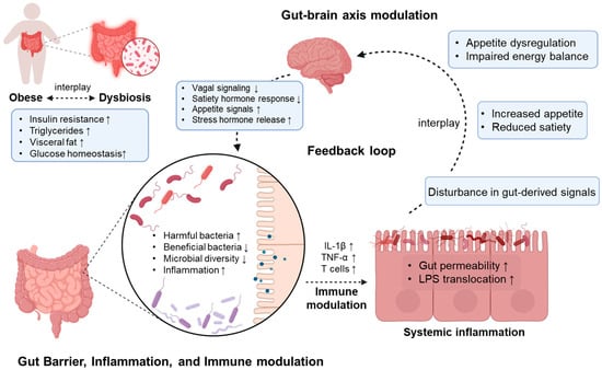 - Asadi, A.; Shadab Mehr, N.; Mohamadi, M.H.; Shokri, F.; Heidary, M.; Sadeghifard, N.; Khoshnood, S. Obesity and gut–microbiota–brain axis: A narrative review. J. Clin. Lab. Anal. 2022, 36, e24420. [Google Scholar] [CrossRef]