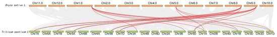 2.4. Analysis of Chromosome Localization and Collinearity of Wheat SRS Gene