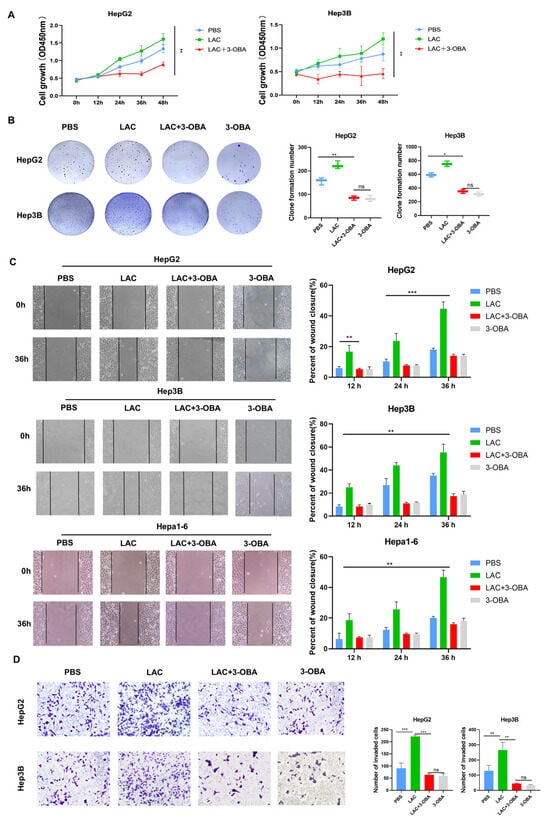 The human hepatocellular carcinoma cell lines HepG2 and Hep3B and the mouse hepatoma cell line Hepa1-6 were obtained from ATCC and maintained in our laboratory. Cells were cultured in Dulbecco’s modified Eagle medium (DMEM) (Gibco, Grand Island, NY, USA) supplemented with 10% fetal bovine serum (FBS) (Gibco, Grand Island, NY, USA) and 1% Penicillin-Streptomycin Solution (Beyotime, Beijing, China) at 37 °C with 5% CO2. L-Lactic Acid (purity > 90.0%) and 3-OBA (purity > 98.0%) were purchased from Aladdin (Shanghai, China).