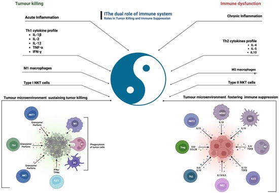 As previously discussed, cytokines play a fundamental role in controlling immune responses. Therefore, they can be regarded as useful molecular targets to distinguish between immune surveillance, where they stimulate anti-tumor responses, and immune evasion in cancer, where tumor cells exploit cytokine signalling to evade immune detection and promote tumor growth.