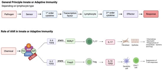 AhR activation influences the differentiation and function of immune cells such as iTregs, Th17 cells, dendritic cells, and natural killer (NK) cells. Indeed, AhR activation in the presence of TGF-β promotes the generation of Foxp3+-iT(reg) cells []. Moreover, AhR can modulate the production of pro-inflammatory cytokines and chemokines, which play crucial roles in immune responses.