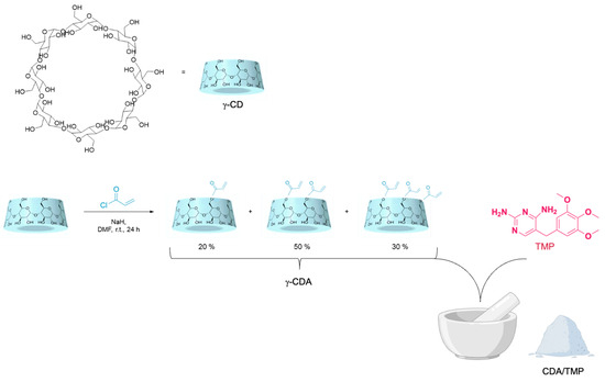 Schematic representation of the synthesis of γ-CD and CDA/TMP complex.