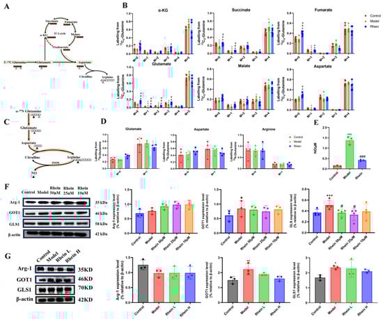 These data supported that rhein regulated the glutamine–aspartate–arginine metabolic pathway through down-regulating its protein GLS1 and GOT1 expression.