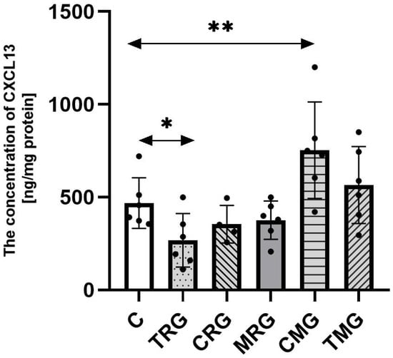 4.3. The Determination of CXCL13 and Fibromodulin Concentration Using ELISA