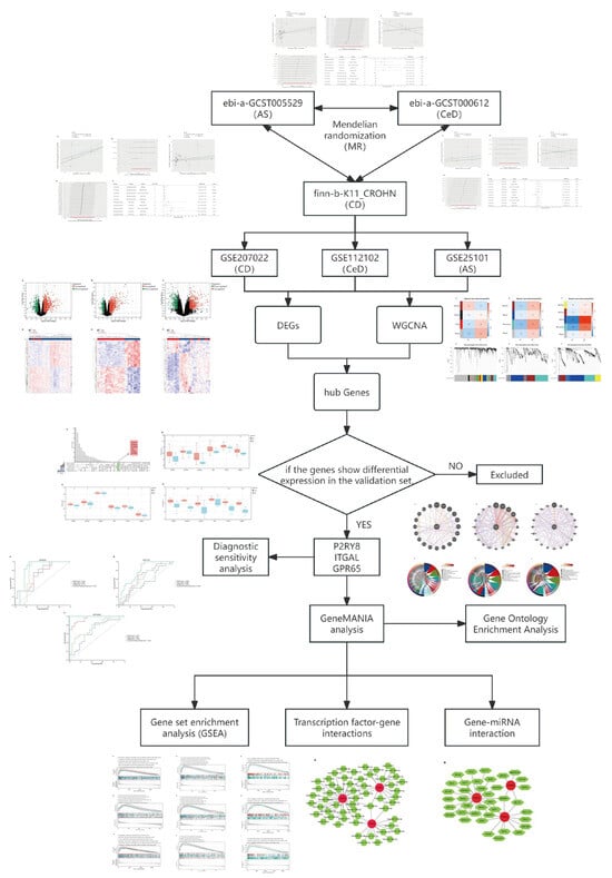 To address these gaps, we conducted a systematic, integrative analysis combining bidirectional Mendelian randomization (MR) with transcriptomic profiling to investigate the causal relationships and shared molecular features among CD, AS, and CeD. By identifying key hub genes and pathways through this multi-layered approach, our study aims to provide novel insights into the common mechanisms underlying these immune-mediated diseases and highlight potential targets for therapeutic intervention.