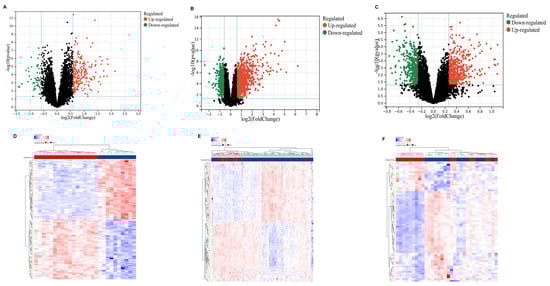 Building on the MR findings, we next explored shared molecular signatures across the three diseases by performing differential expression analysis based on transcriptomic datasets. In the CD dataset GSE207022, of the 1616 differentially expressed genes (DEGs), 1055 were upregulated and 561 were downregulated. In the CeD dataset GSE112102, there were 1299 DEGs, with 914 of them upregulated and 385 of them downregulated. In the AS dataset GSE25101, there were 914 DEGs, of which 503 were upregulated and 411 were downregulated. The expression patterns of DEGs are visualized using volcano plots in Figure 5A–C, and the differential expression for all DEGs through heatmaps is shown in Figure 5D–F.