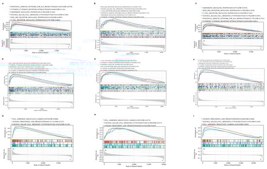 The GSEA software (version 3.0) was employed to categorize the samples into high- and low-expression groups. The c2.cp.kegg.v7.4 gene set [] was acquired to evaluate the pathways. The gene sets were defined with a range of sizes between 5 and 5000, with 1000 permutations, with a threshold for statistical significance set at p < 0.05.