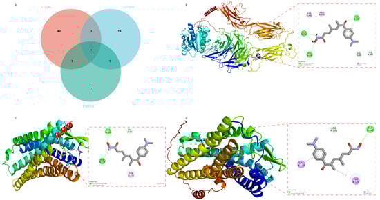 Finally, to explore potential therapeutic candidates targeting the shared hub genes, we performed in silico drug prediction and molecular docking analyses. Protein–drug interactions hold significant research value in uncovering the shared biological mechanisms of the three diseases. In this study, drugs targeting the ITGAL, GPR65, and P2RY8 genes were identified using the DSigDB database (Supplementary File S11), with their intersections visualized via a Venn diagram (Figure 11A). A total of 49 drugs targeting ITGAL, 22 drugs targeting GPR65, and 10 drugs targeting P2RY8 were identified, among which Trichostatin A was found at the intersection, suggesting a potential link to molecular pathways associated with key genes. Subsequently, molecular docking analysis was performed to evaluate the binding affinity of Trichostatin A with key genes associated with the three diseases (Supplementary File S11). A binding energy below −4.25 kcal/mol indicates a certain binding activity, below −5.0 kcal/mol represents moderate activity, and below −7.0 kcal/mol suggests strong binding affinity. The docking results showed that Trichostatin A binds to ITGAL (binding energy: −6.7 kcal/mol) via hydrogen bonds (VAL408, HIS586, and ALA356), hydrophobic interactions (VAL49 and ILE585), π-cation, π–π T-shaped interactions (HIS586), and alkyl interactions (PRO103 and CYS465) (Figure 11B). With GPR65 (binding energy: −8.1 kcal/mol), it forms hydrogen bonds (ASP172 and TYR269), hydrophobic interactions (HIS10), and π–alkyl interactions (TYR174) (Figure 11C). With P2RY8 (binding energy: −6.0 kcal/mol), it interacts via hydrogen bonds (ALA140), hydrophobic interactions (ARG135), π–σ interactions (VAL119 and TRP134), and π–alkyl interactions (TRP134) (Figure 11D). These findings suggest that Trichostatin A effectively binds to proteins encoded by the three key genes and may serve as a potential therapeutic candidate targeting these genes.